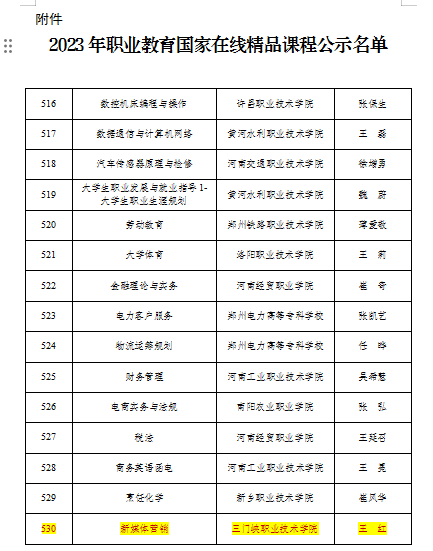 10月23日,中华人民共和国教育部公布了关于2023年职业教育国家在线精品课程推荐名单的公示,我院王红老师的《新媒体营销》课程入选,这是我校继去年获得1门国家级在线精品课后课程建设的又一突破,为学校“双高”建设奠定了坚实基础。