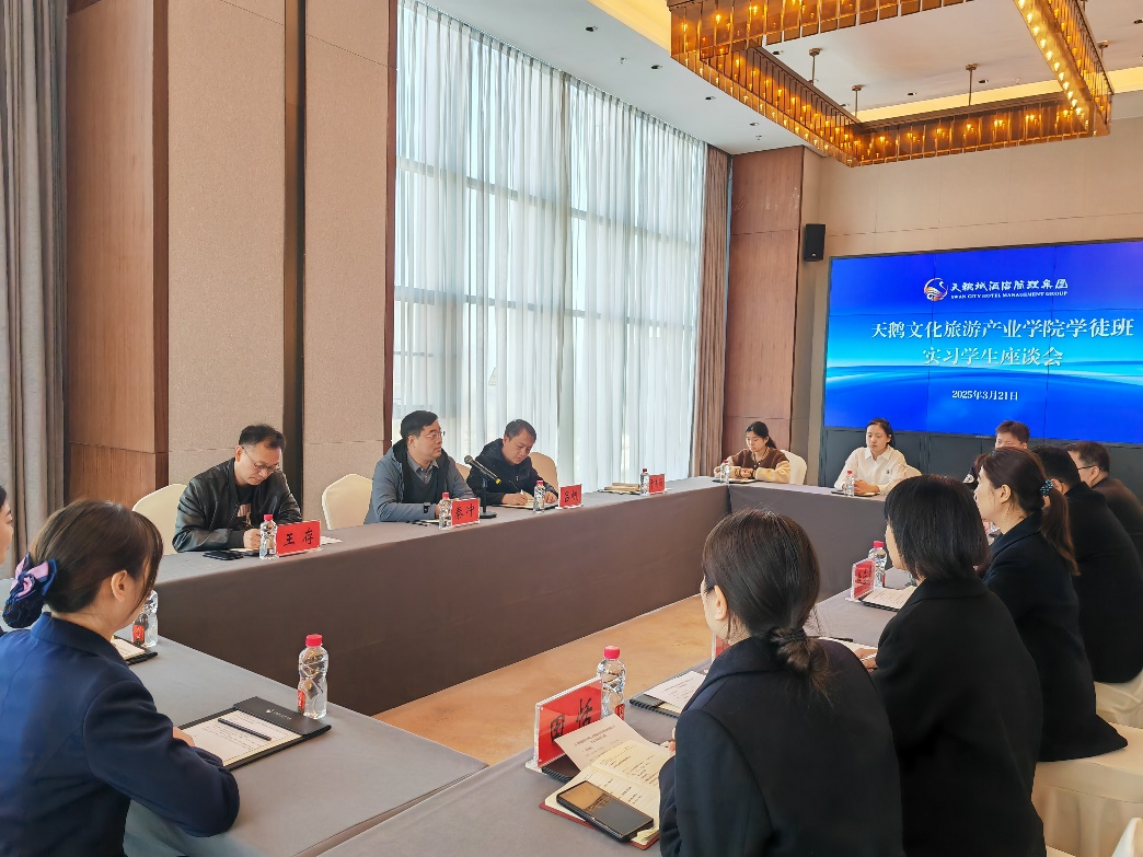 为进一步完善“校企合作、产教融合”的人才培养模式,增进与企业、学生间的了解和情谊,加大党建在“校企合作”中的引领作用,落实学校党员领导干部“四下基层”工作,3月21日上午,OK138太阳集团党总支书记秦冲,副书记、院长吕帆等一行4人前往三门峡天鹅城酒店集团看望2023级现代学徒制班学生,了解学生岗位实习情况,并与企业人力资源部部长张佳慧及各子公司酒店的人力资源部门负责人进行座谈。