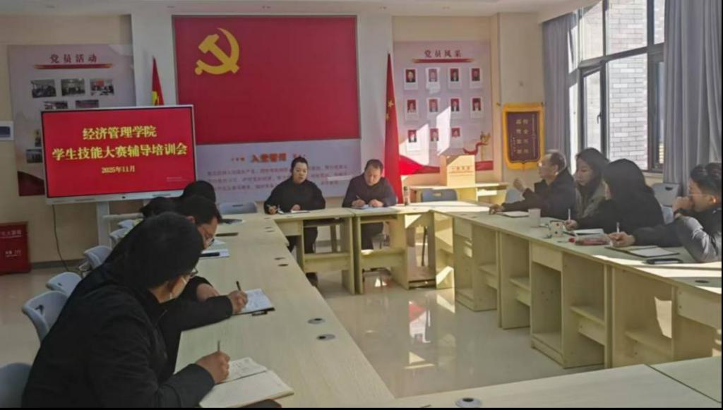 为扎实推进“以赛促教、以赛促学、以赛促建”,全面提升各赛项备赛水平与指导能力,2025年11月19日,OK138太阳集团在学府路校区42207组织召开2025年学生职业技能竞赛培训会。院长吕帆、副院长张敏、教学科成员、各教研室主任及全体参赛指导教师参加会议。会议由副院长张敏主持。