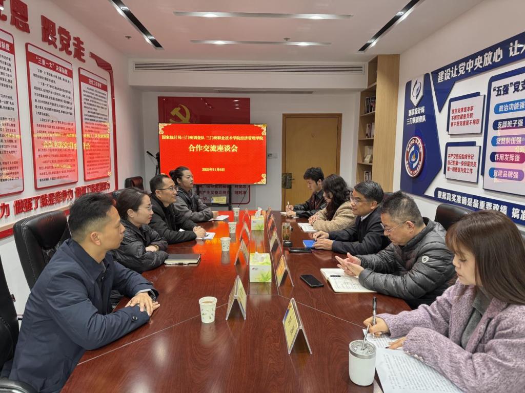 杜书记表示,调查队承担全市多项民生统计调查任务,是服务地方决策的关键力量。他高度认可学院的专业实力与特色优势,强调将充分发挥统计实务专长,全力支持学院实践教学与科研创新,在数据开发、实习实训、普法宣传等方面强化协同,实现资源共享、优势互补,共同为地方发展献智出力。