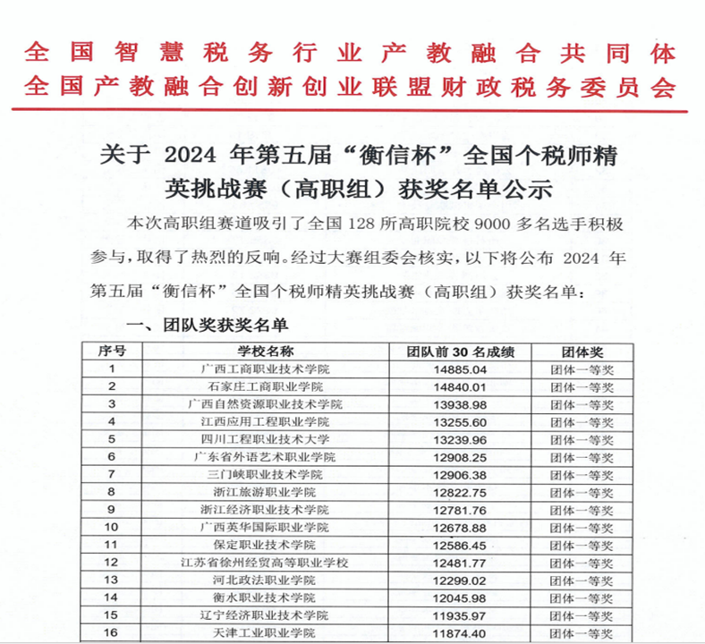 2024年第五届“衡信杯”全国个税师精英挑战赛(高职组)一等奖